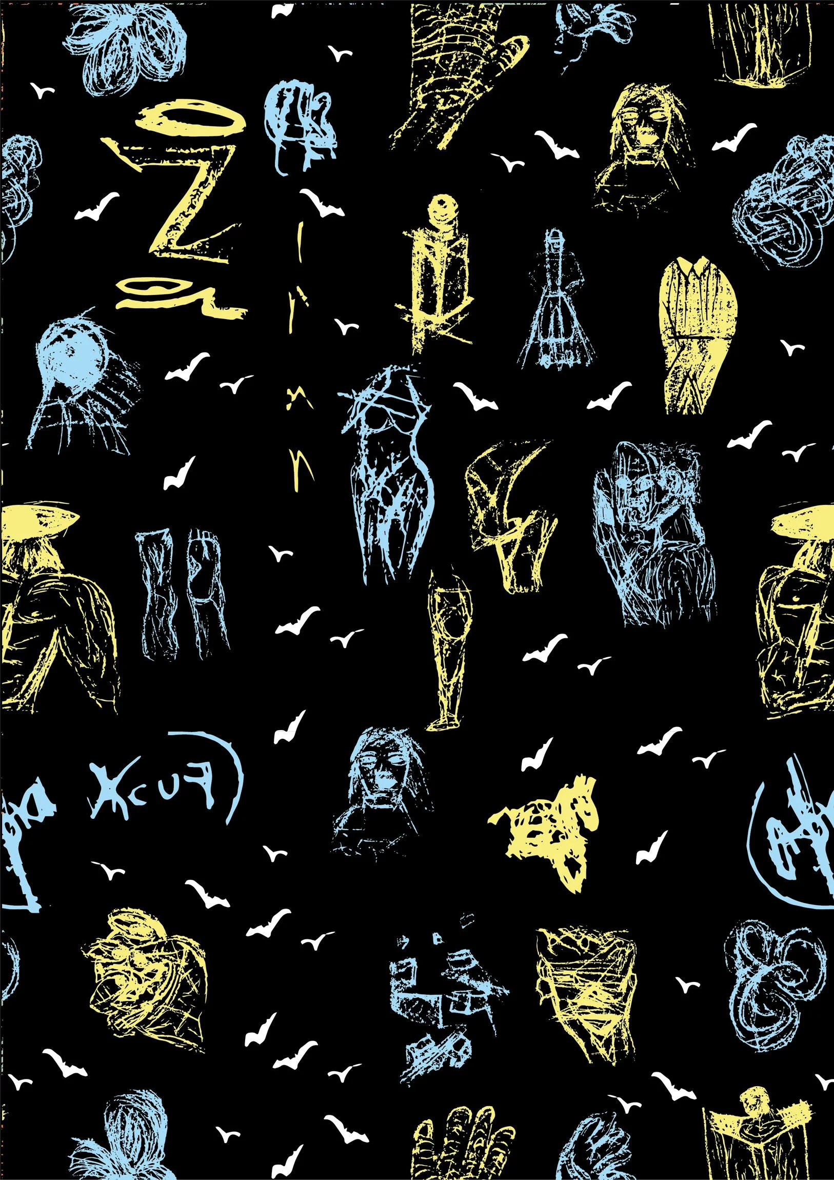 I have been commissioned to create a textile collection inspired by the artwork of Enrique Congo. The pile of drafts and sketches from Congo are the starting point for this project - my All Eyez On Me project. Products such as printed home textiles and home goods - upholstery fabrics, cushion, table runners, ceramics, wallpaper or smaller everyday objects for the bureau are planned. For the future I want to tackle the wearable market with some fresh and authentic designs.